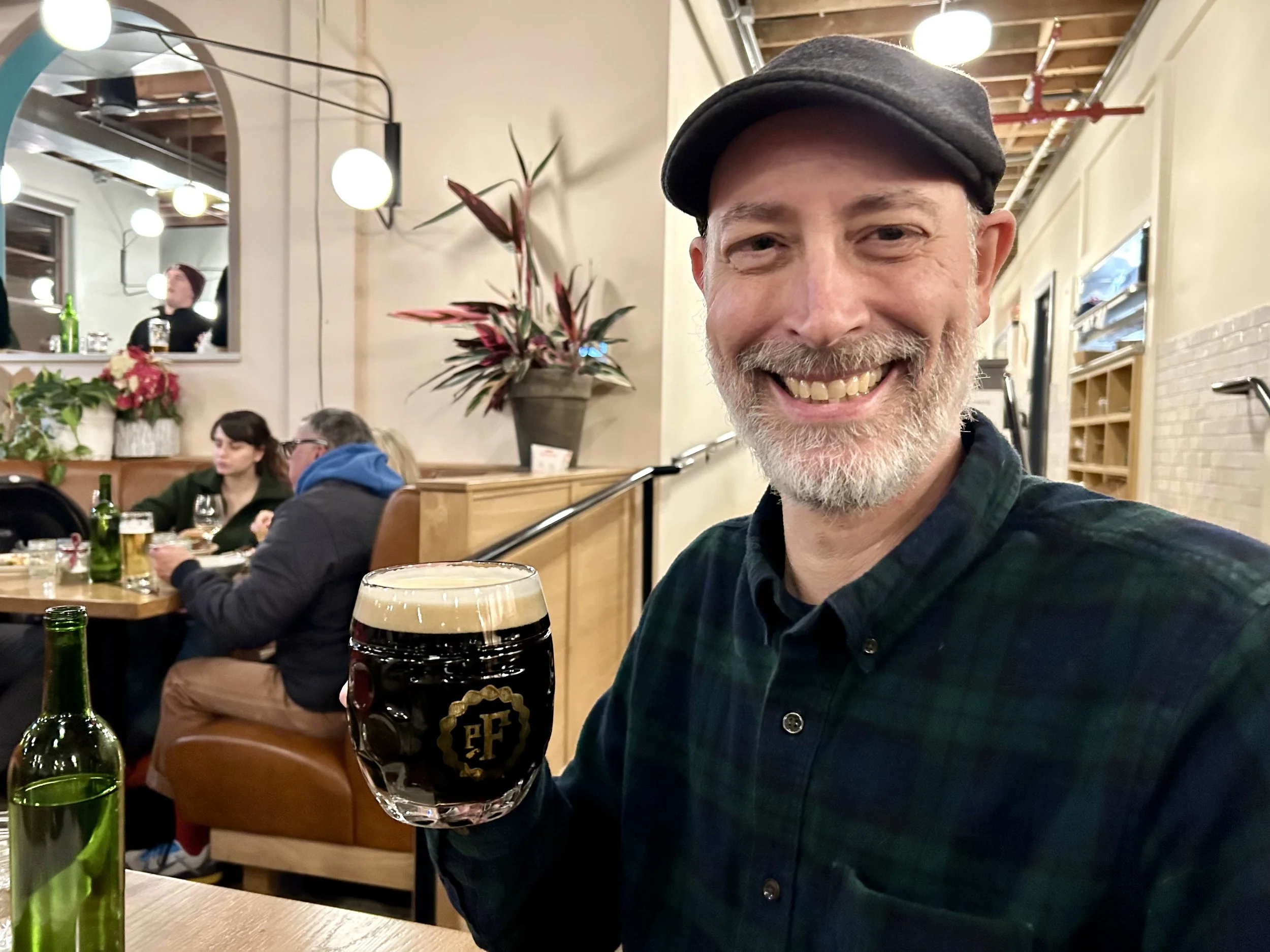 But what about that smoked malt? I enjoyed my first glass in Milwaukie with Sally and two friends, and I asked them to tell me if they detected anything unusual. None did. When I finally revealed that it contained a dab of smoked malt, only Sally (she of the superb palate) could even then pick it out. I did notice it, but rather than coming across as overt smoke, it’s more an umami note, a savoriness you pick up mid-palate. Like all my favorite beers, it’s a subtle inclusion that barely whispers, but materially improves the beer. It’s delish, and obviously I think anyone within six or seven hundred miles of pFriem should plan on stopping in for a taste.