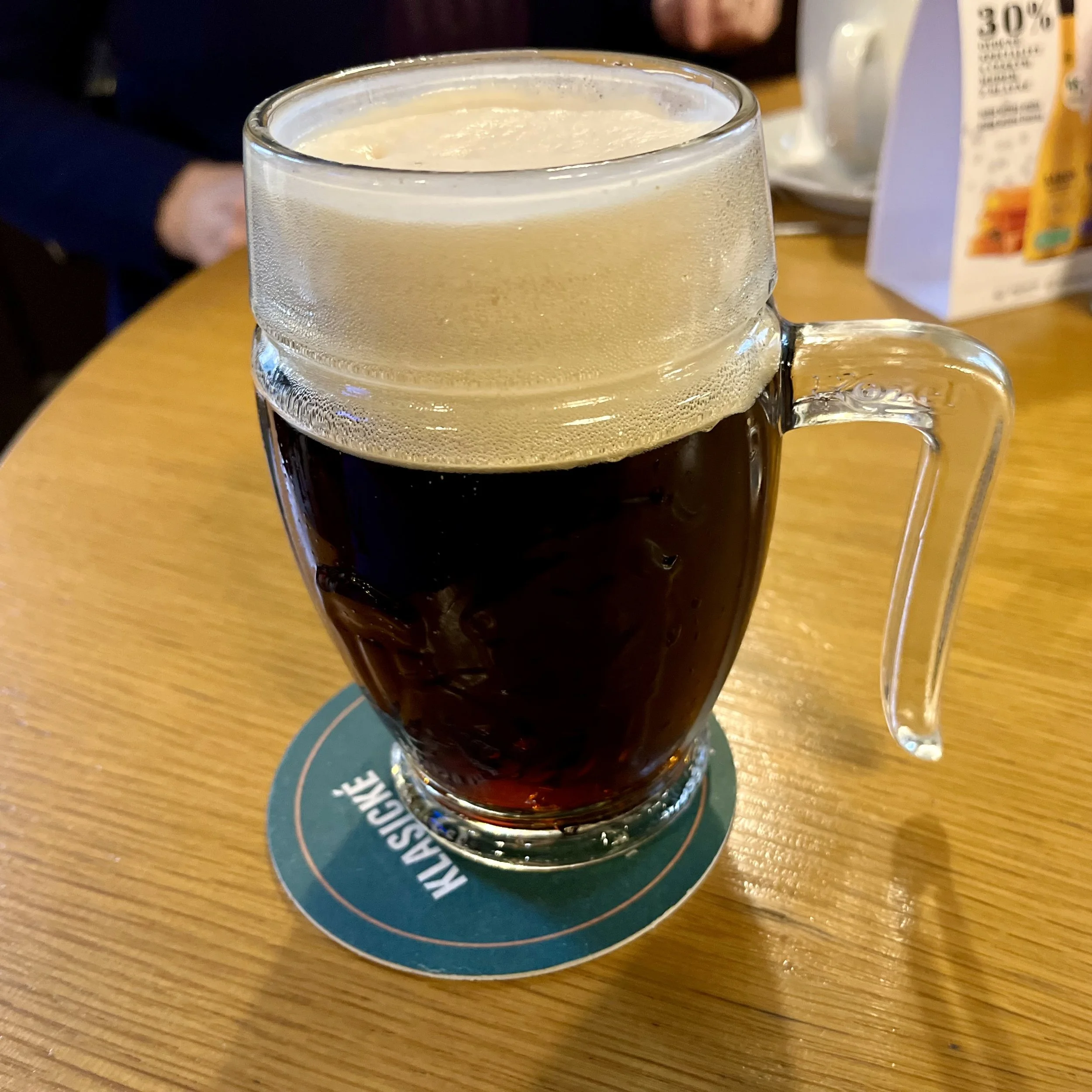 Breweries riff on the basic design in many ways. They can use wide, vertical wales, or shape the glass with a more upright posture. One of the Kozel glasses has a cool, open-bottom handle. (Kozel is in the Pilsner Urquell corporate family and you’ll find different versions of their glassware pub to pub.) As in Belgium, breweries often stamp their names on their glasses, but sometimes they emboss their logo directly into the glass. They all have a slightly different feel and that subtly changes the drinking experience.